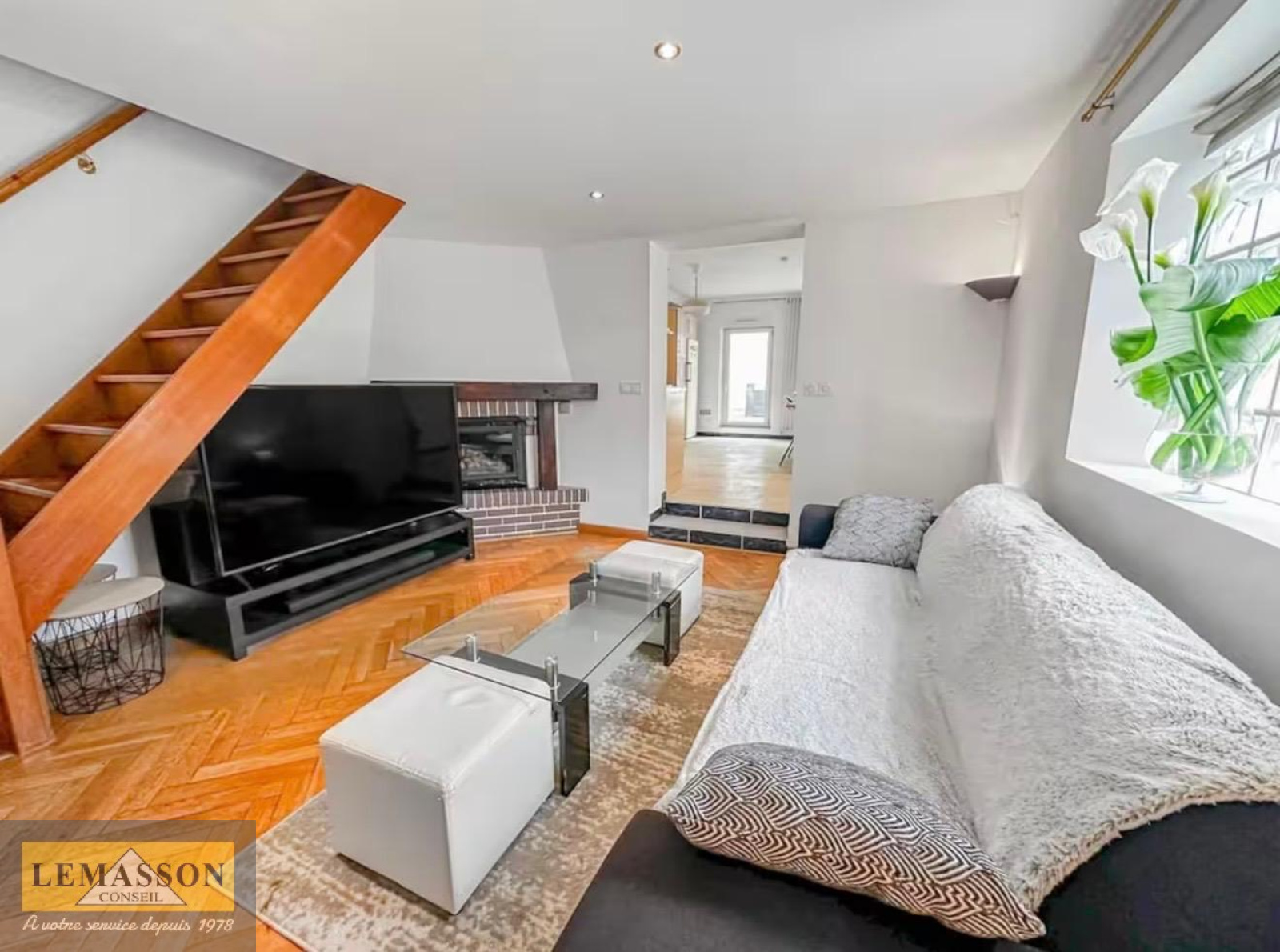 Au rez-de-chaussée, vous découvrirez une grande entrée, une salle de bains, ainsi qu’un séjour ouvert sur une grande cuisine lumineuse, offrant un espace de vie convivial et agréable au quotidien.