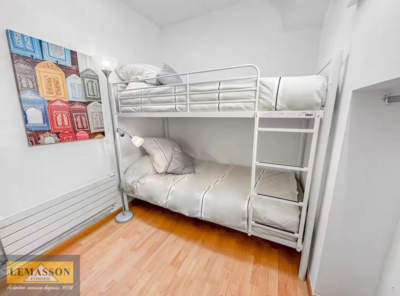 À l’étage, le bien propose deux chambres de taille standard, une terrasse, deux chambres d’appoint idéales pour enfants, bureau ou dressing, ainsi qu’une salle d’eau.