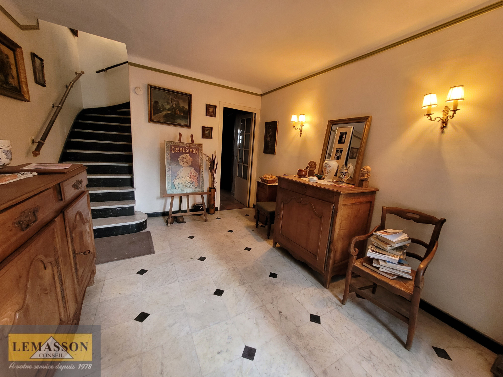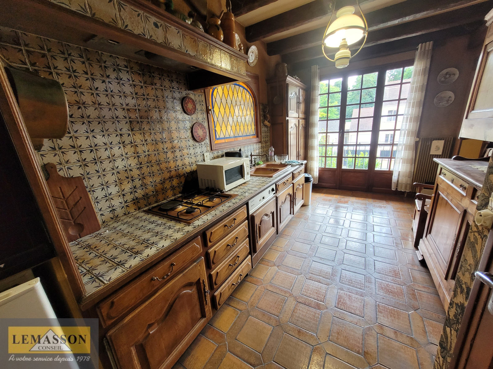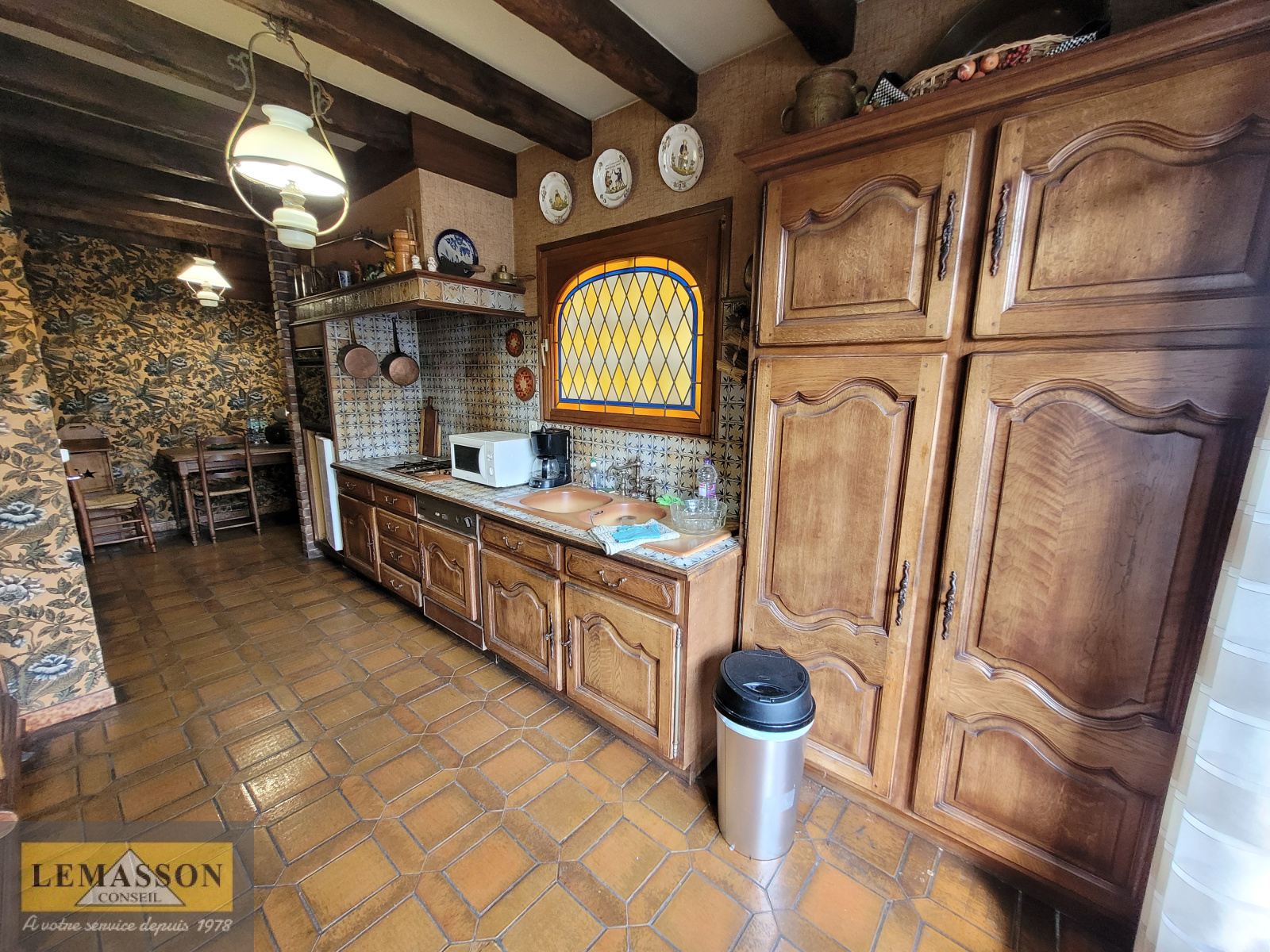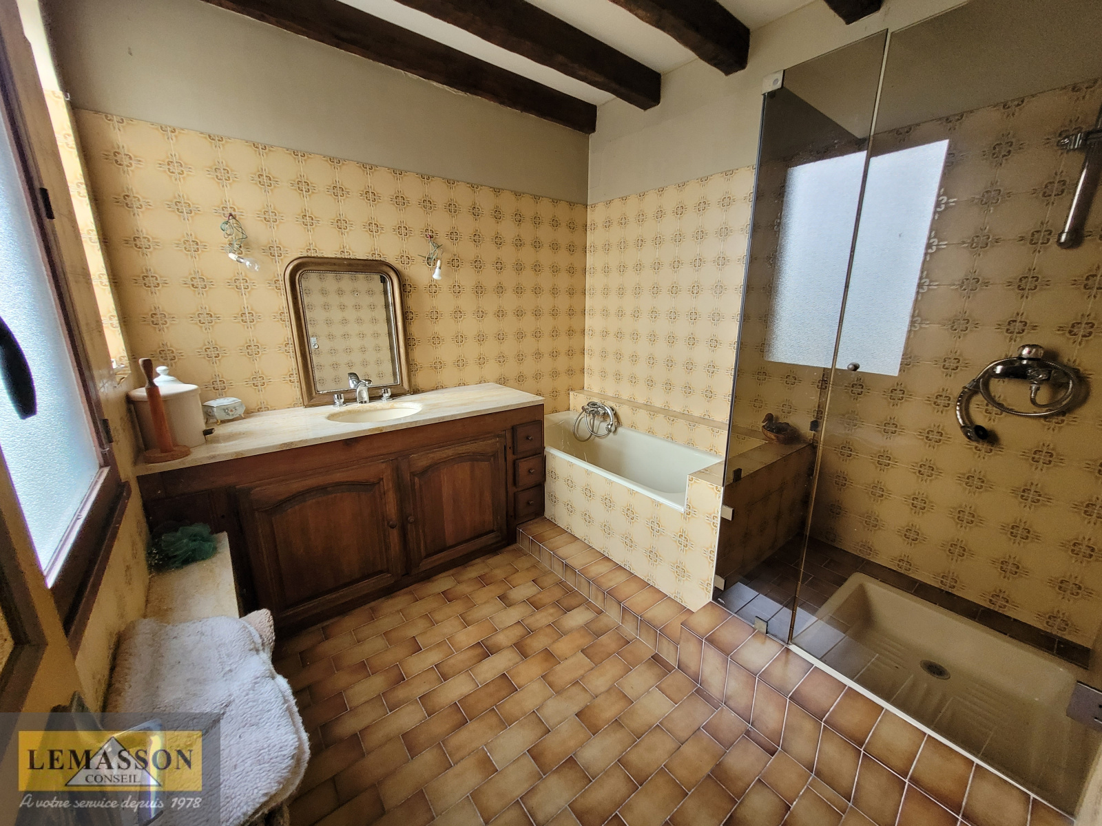 Au premier étage, salon, salle à manger, cuisine indépendante, salle de bains, deux chambres, salle de bains avec douche, un WC.