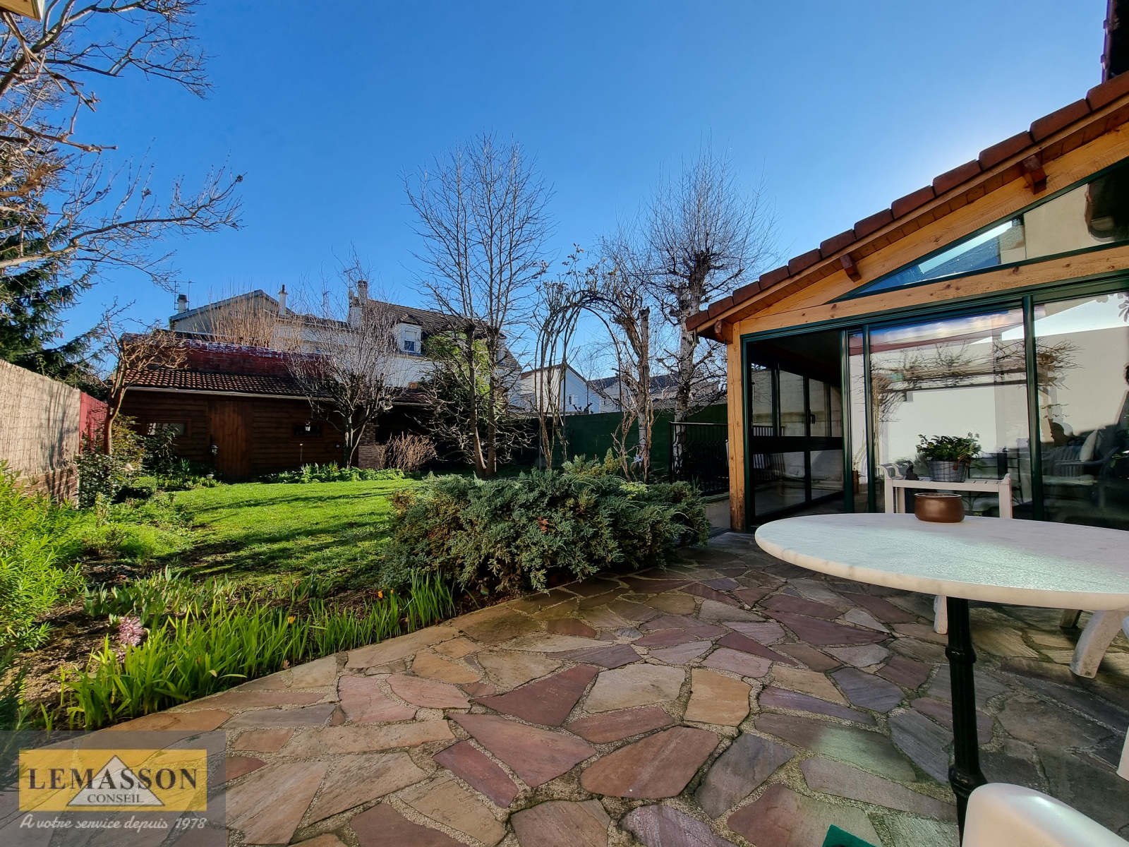 PAVILLON FAMILIAL IDÉALEMENT SITUÉ !!! Situé dans le très recherché quartier des OISEAUX à Drancy, calme, pavillonnaire et proche de toutes commodités (écoles accessibles à pied, RER B Drancy à 15 minutes à pied, centre ville à 10 minutes à pied...). Nous vous proposons ce superbe pavillon de caractère, élevé sur un sous-sol total divisé en un garage double, une chaufferie, une buanderie et une cave. Au rez-de-chaussée surélevé, une entrée sur un séjour avec cheminée, donnant accès à une sublime véranda (chauffée et isolée) pour profiter du jardin toute l'année, une cuisine dînatoire aménagée de 20m² environ, une chambre, un dégagement, une salle d'eau et des WC. A l'étage, un palier desservant une salle de bains avec WC et 4 chambres, dont une avec un balcon. Le tout sur un superbe terrain entretenu et arboré de 280m². De plus, en fond de parcelle, une remise à usage de stockage et un coin barbecue couvert viennent compléter ce bien. Chauffage central au gaz (chaudière 2011), double vitrage, isolation intérieure, le bien ne nécessite pas de gros travaux, simplement d'une mise à votre goût ! A VISITER AU PLUS VITE !!!