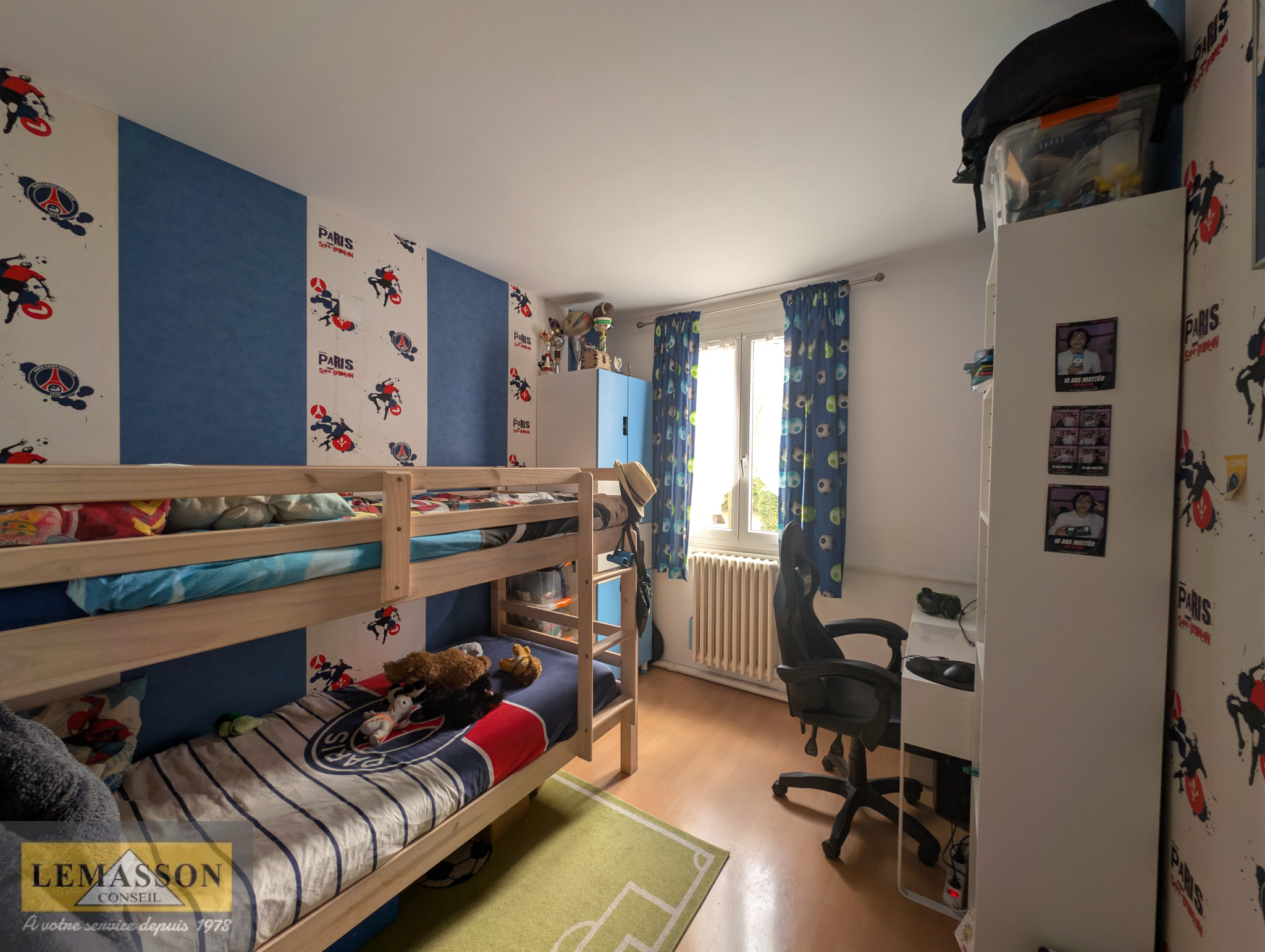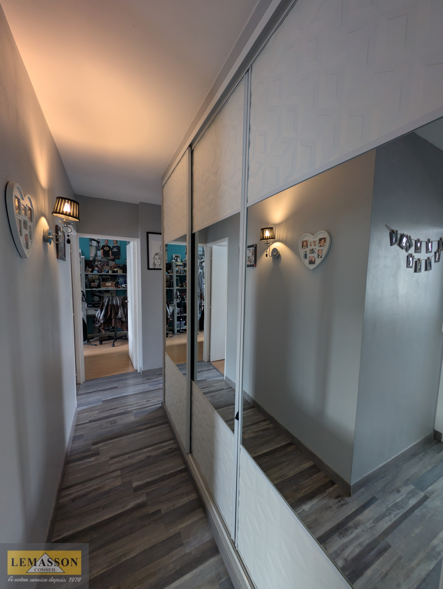 La partie nuit comprend trois chambres, dont deux avec placards intégrés et une troisième plus petite d’environ 8,2 m², idéale pour un bureau, une chambre d’enfant ou une pièce d’appoint.