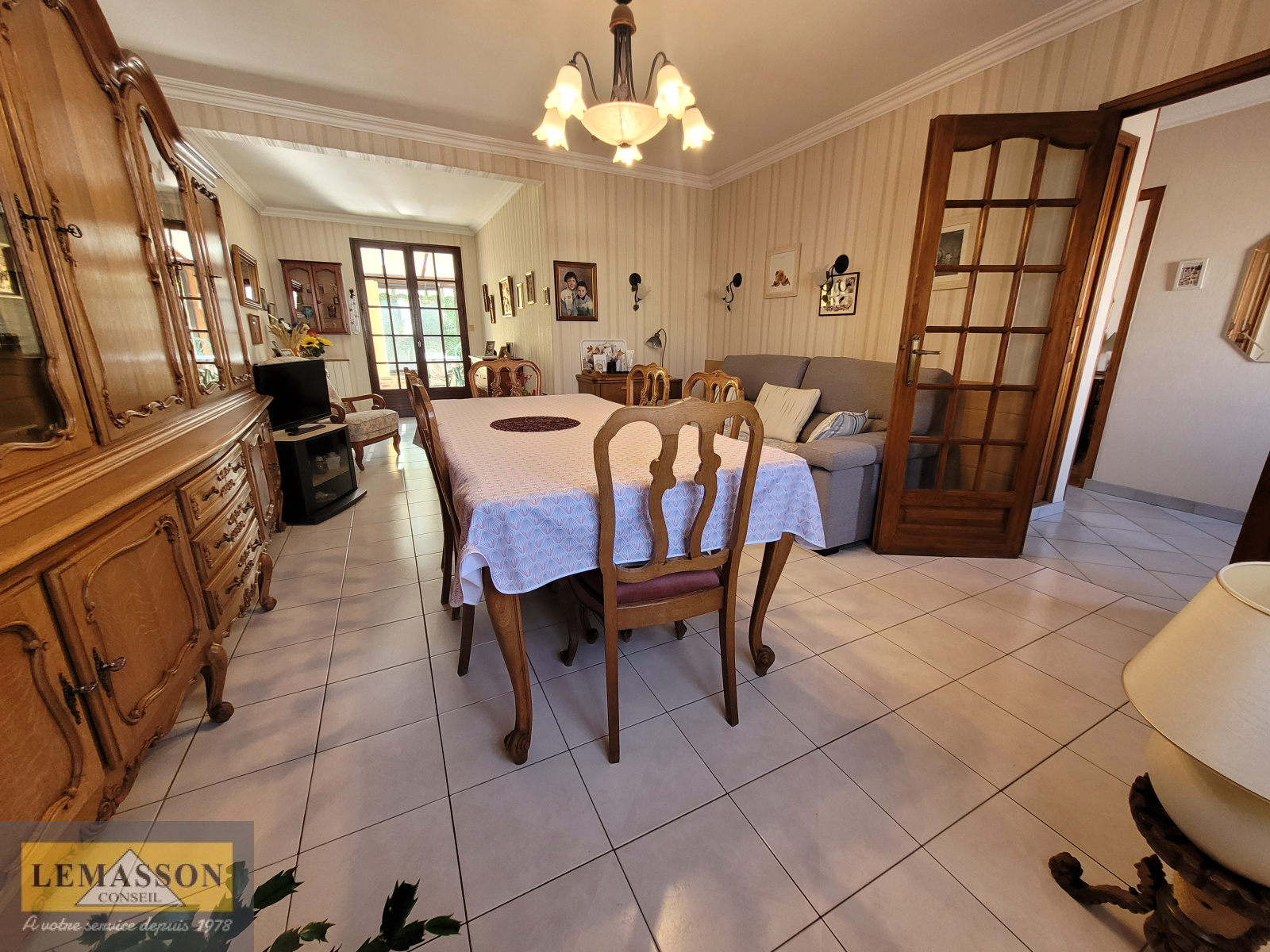 Le pavillon comprend au rez-de-chaussée surélevé, un séjour double, véranda, cuisine, deux chambres et une salle de bains avec WC.