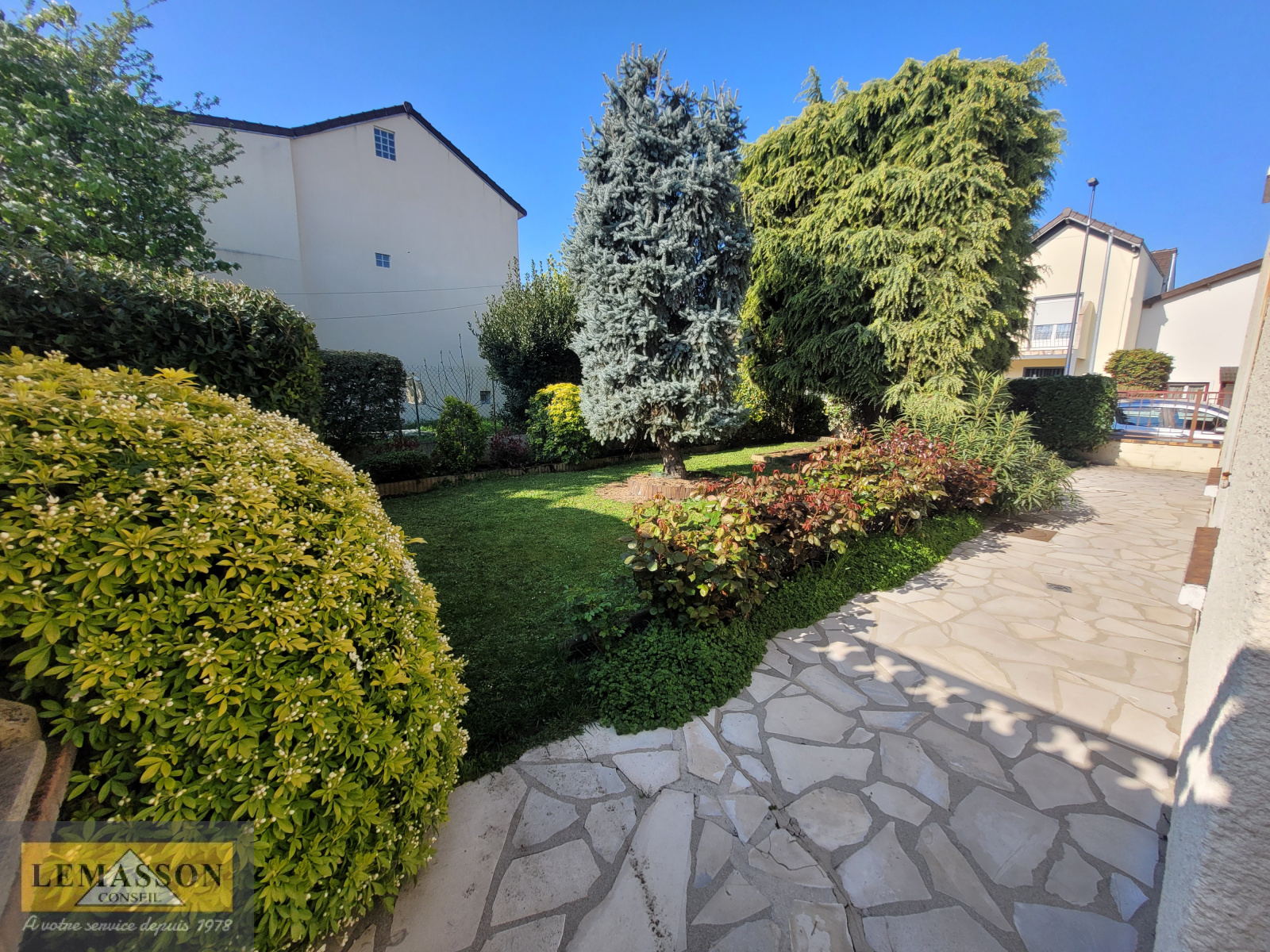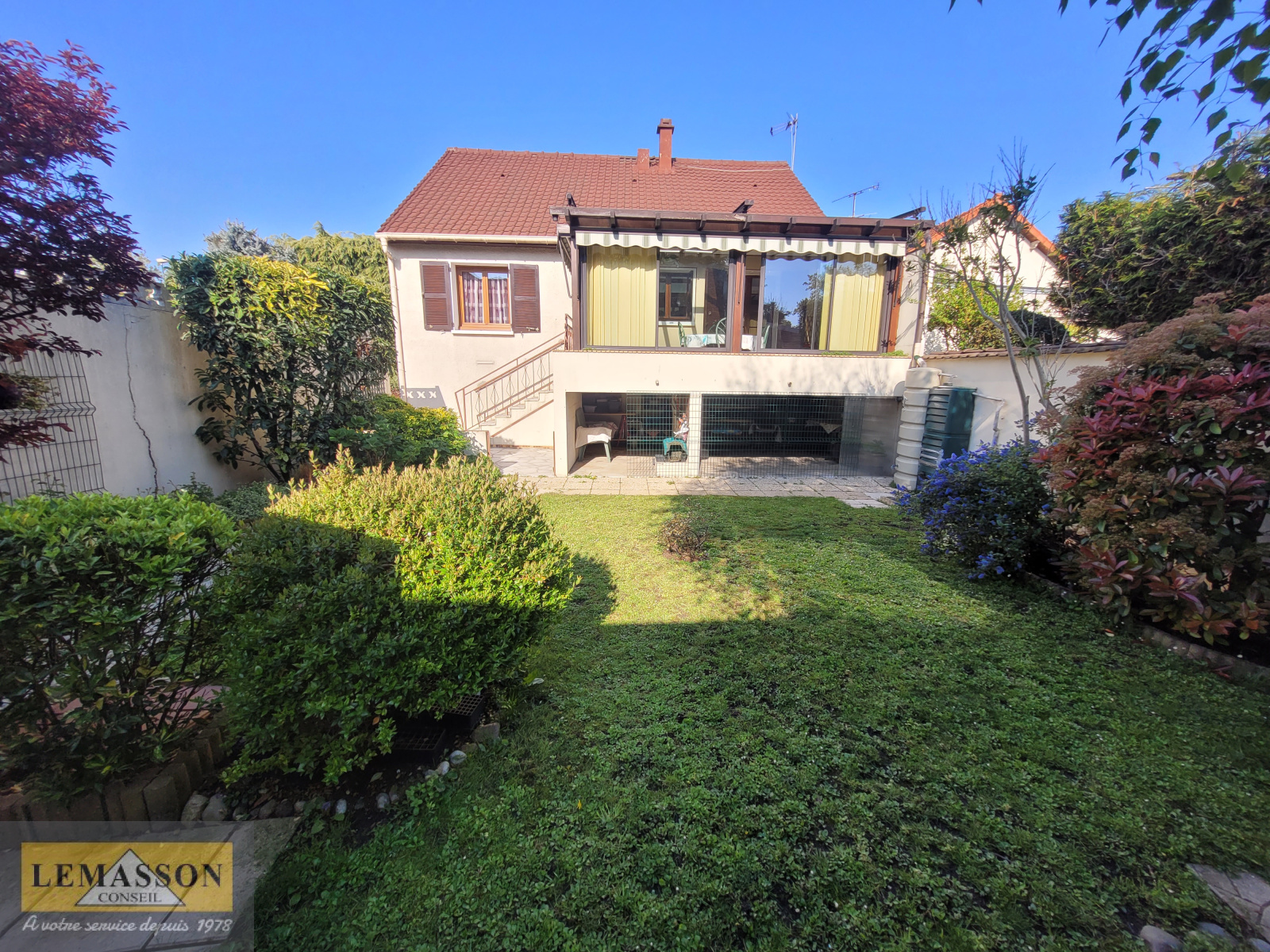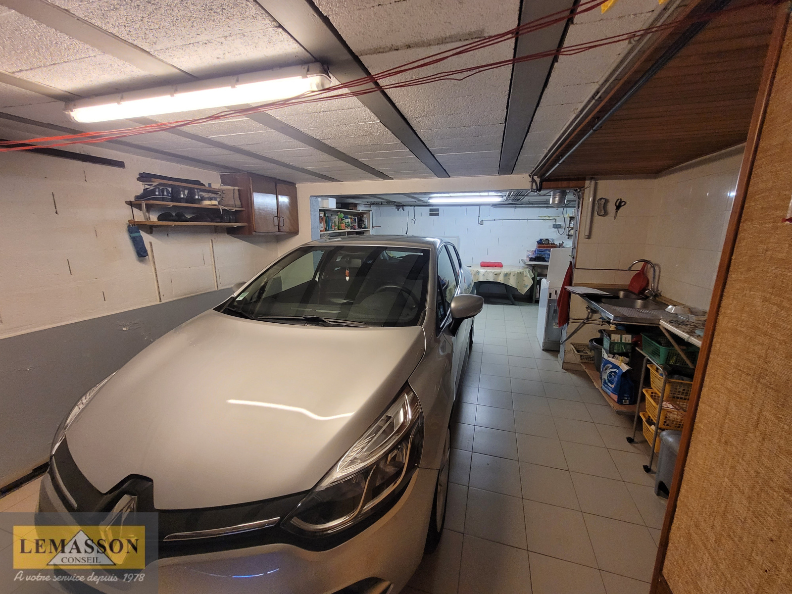 Le sous-sol semi-enterré est composé d'un garage, chaufferie, une pièce avec cuisine d'été, une chambre et une salle d'eau avec WC.