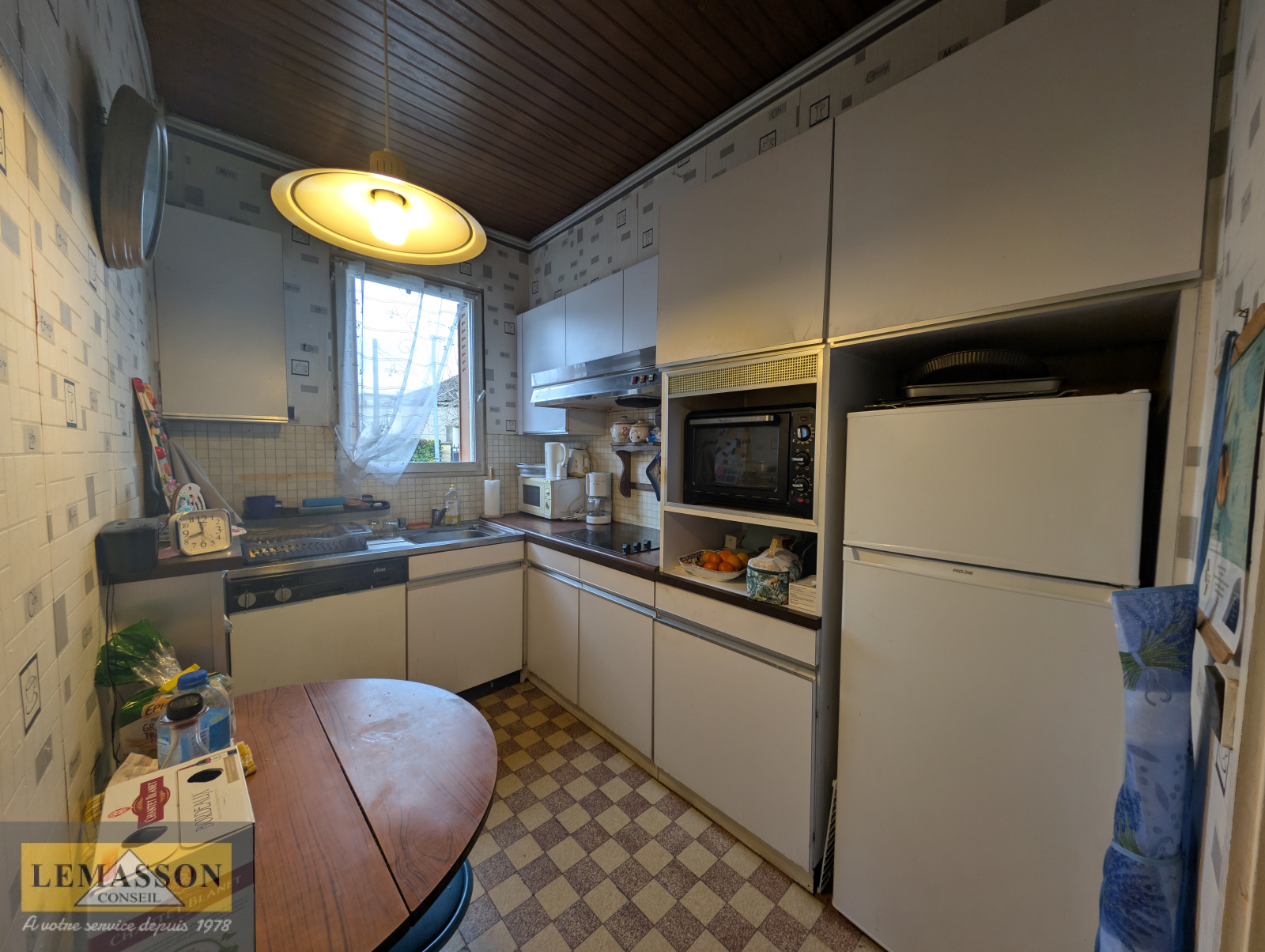 Au rez-de-chaussée, la maison se compose d’une entrée avec placards, d’un séjour lumineux d’environ 19 m², d'une cuisine indépendante, d’une chambre, d’un dégagement, d’une salle de bains, d’un WC, ainsi que d’une chaufferie équipée d’une chaudière Frisquet récente (2023), entretenue annuellement. Un garage complète ce niveau. Possibilité de stationner un véhicule devant le garage également.