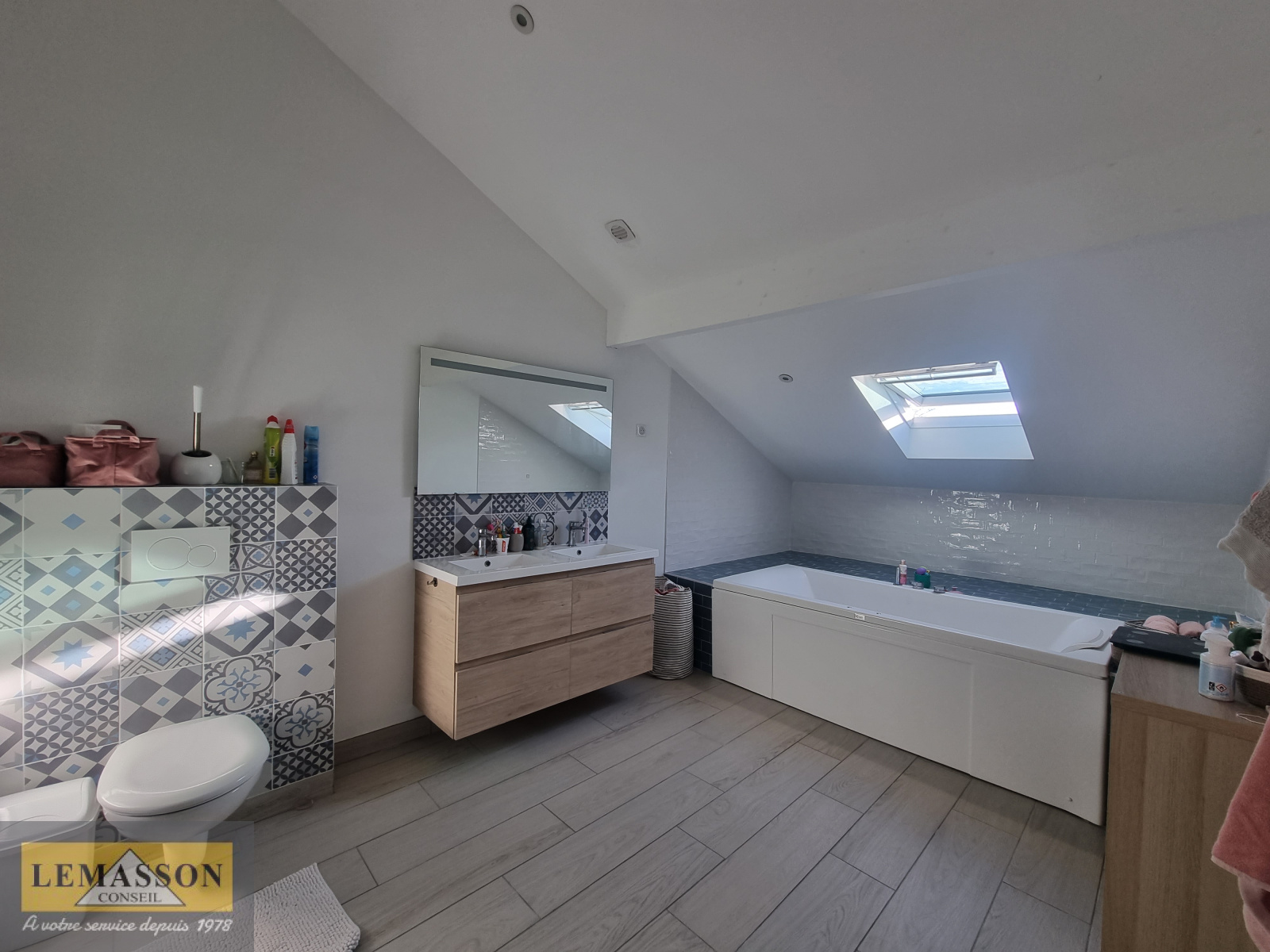 Situé dans l'un des secteurs les plus recherchés de la ville du BLANC-MESNIL, calme, pavillonnaire, proche des écoles, des commerces et des transports (- de 15min à pied du RER B), venez découvrir ce pavillon entièrement rénové en 2020, offrant des prestations de qualité. Il s'élève sur un sous-sol total semi-enterré divisé en un garage double, une grande buanderie avec placards et une pièce. Au rez-de-chaussée surélevé : un magnifique espace séjour/salle à manger d'environ 50m², une cuisine ouverte, totalement équipée avec des éléments de qualité, un espace libre pouvant être réaménagé en chambre, une salle d'eau et des WC. A l'étage, un palier avec dressing desservant 3 chambres équipée d'un système de climatisation pour un confort optimal en été et une grande salle de bains (baignoire balnéo) avec WC. Le tout édifié sur un terrain de 332m² sans vis-à-vis, un coin barbecue/cuisine extérieure aménagée et la possibilité de garer un véhicule en extérieur. Pompe à chaleur, Chauffage électrique Thermor, Cuisine équipée sur mesure, Ballon d'eau chaude thermodynamique, Système anticalcaire, Aucune anomalie électrique... Taxes foncières 2023 : 2003,00€. VENEZ POSER VOS VALISES !!!